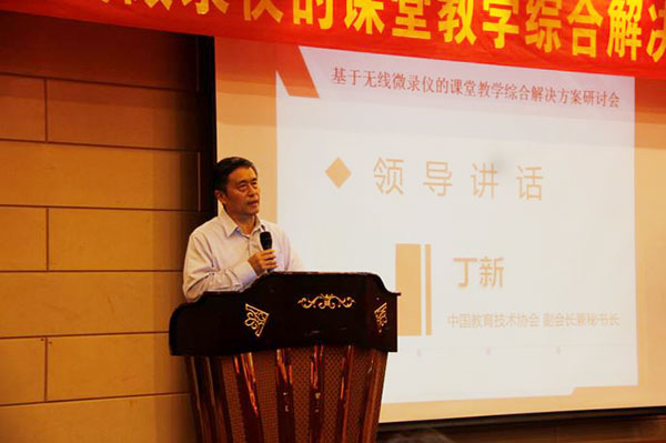 中央電教館副館長丁新為研討會做主旨演講“企業為中國教育進步提供技術支撐,微課制作是現階段教育改革的重要抓手,新技術要先用起來,才能進一步的推進教育模式改革”。