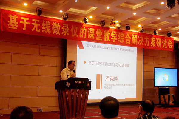 劉雍潛向研討會分享了國內國外的教育技術應用,認為吉星無線微錄儀的一次技術進步,實際上是推開了教育技術改革的一扇門。