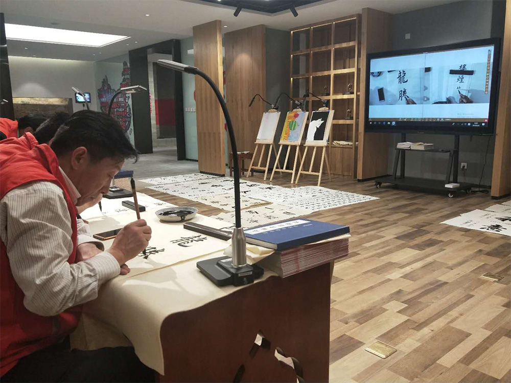 正如主辦方的郭總經理在介紹時說道:通過這個系統使得老師的書寫手法很直觀的呈現在所有學生面前,一個老師可以教所有的學生!達到一對多的教學效果,提高老師的書法教學效率。