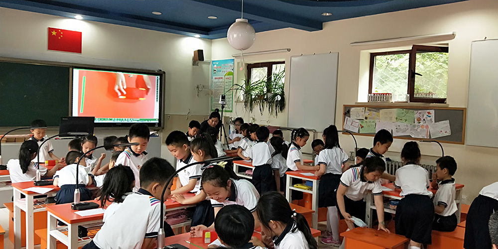 在智能互動終端及智慧課堂系統的幫助下,每個小組在大屏展示了自己的作品并如何將石頭快速的移開的過程共享給全班,小組之間進行互動學習,大大提高了課堂的互動氛圍。同學們深刻體會到科技的發展給人類的生活帶來了非同凡響的影響!