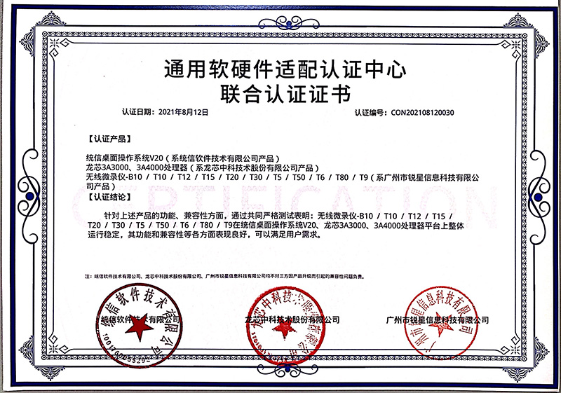 龍芯認(rèn)證證書(展示互動(dòng)寶、無線微錄儀)