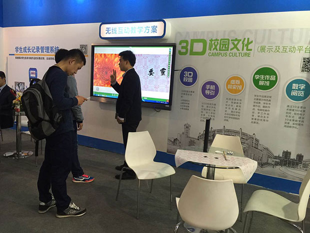 吉星作為國內首家無線視頻展臺的制造商,也是現今無線展臺的領導者。本次展會雖然沒有以參展商的身份參展,但我們自主研發的專利產品--無線視頻展臺在合作伙伴的展位上進行了展示。基于無線視頻展臺的“展示互動課堂”、“展示互動書法教學”、“展示互動實驗教學”、“微課互動平臺”四大教學解決方案一經亮相,參觀的老師們都被其高度的互動性和便攜性深深吸引,紛紛駐足體驗試用。經工作人員的詳細講解,無線展臺“高清、互動、方便”的特性更是得到一致好評,也非常認可“無線互動,翻轉課堂”的教學理念。相信這種創新的設備所帶來的教學模式一定能調動學生積極性,為課堂注入前所未有的新鮮感和創造力!