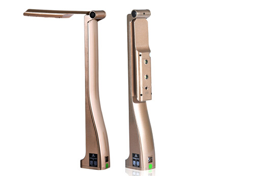 在結構上,吉星T8仍然是常見的折疊式結構,鏡頭可以折疊收起到直立的支桿上。機身外表采用光滑金屬質感涂裝,加上土豪金的外觀,視覺感受非常不錯!產品尺寸僅為63*40*338mm,重量僅為0.3kg,很小巧輕便有沒有!